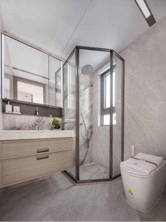 ☑️☑️越秀杨浦天玥售楼处电话:☑️☑️卫生间吊顶:奥普暖风机和防潮铝蜂窝大板,防潮抗污,生计更矫健,体面适用,冬季暖风抗寒。